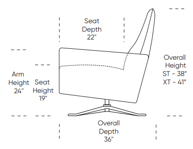 - 22" seat depth / 19" seat height