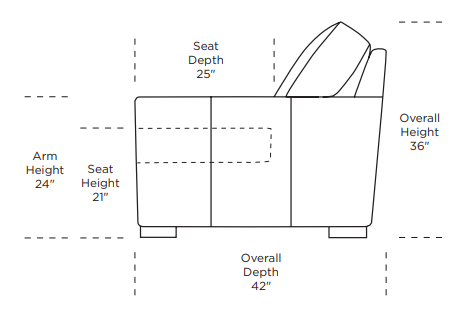 - 25" seat depth / 21" seat height